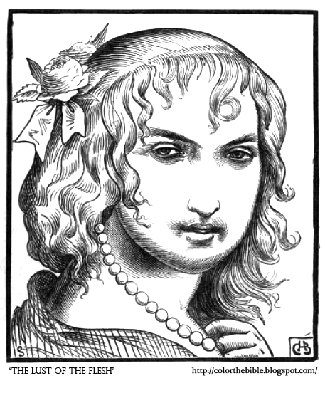 Description of The Coloring Page: Portrait of "The Lust of The Flesh" from Pilgrim's Progress. She is one of Adam's three children.