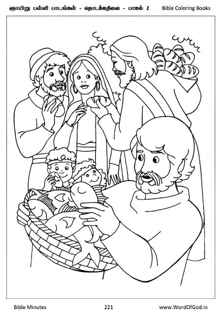 Jesus multiplies the loaves and fishes coloring page